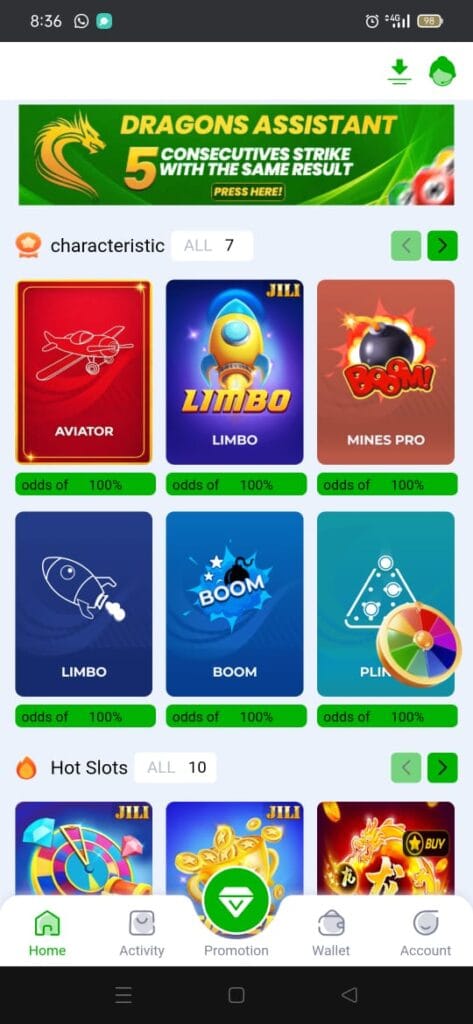 It comes with a clean and colorful interface, which is so easy to use. All game categories are displayed so clearly, making the navigation smooth for new users, which is nice. The app also provides: Daily login bonuses, Promotional rewards, Smooth gameplay, Secure payment options. The customer support is available to help users with login, deposits, or withdrawals as needed. This support system helps build trust, as well as confidence, amongst the many players.